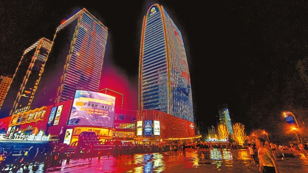 近日,夜幕降临,华灯初上,市民走出家门到天中环球港赏夜景、逛夜市,尽享休闲好时光。(驻马店日报记者 王永良 摄)