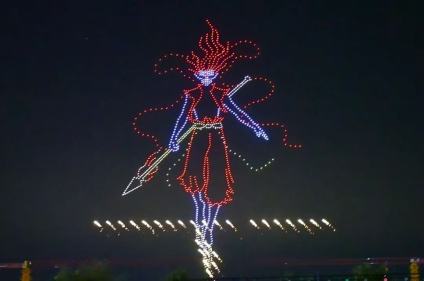 活动现场,2000架无人机从市民文化广场腾空而起,如星星般璀璨,通过不断变幻造型,在天空中呈现出梁?;?、南海禅寺、悟颖塔、宿鸭湖、巨龙腾飞、哪吒、孙悟空等一幕幕流光溢彩的生动场景,这种现代、新颖、充满科技感的表演吸引了众多市民驻足观看,欢呼声、呐喊声此起彼伏,大家纷纷拿起手机记录这美好的时刻。