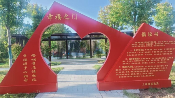 走进上蔡县婚俗文化主题公园,映入眼帘的就是“幸福之门” 以心形拱门传递浪漫。这里将婚俗文化融入景观,既有对传统婚恋观的弘扬,也有移风易俗的倡议,漫步其间,感受婚姻文化的传承与新声,让每一步都沾染幸福的期许 。