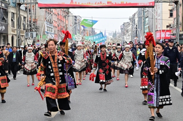 当天上午,一场融合两地特色的文化巡游率先点燃全城氛围。由上蔡县、台江县共同组建的300多人的队伍,沿上蔡县坊城广场至蔡明园广场路线缓缓行进。来自台江县的苗族歌舞团成为全场焦点,芦笙声悠扬婉转,苗家儿女身着银饰点缀的传统盛装,舞步轻盈灵动,将黔东南的民族风情演绎得淋漓尽致;上蔡本地民俗元素穿插其间,两地文化符号交相辉映。沿途群众纷纷驻足观赏,手机镜头不约而同对准这支“跨地域队伍”,一场“足不出县赏黔韵”的视听盛宴,让传统重阳节突破地域边界,正式迈入“豫黔联庆”的新境界。